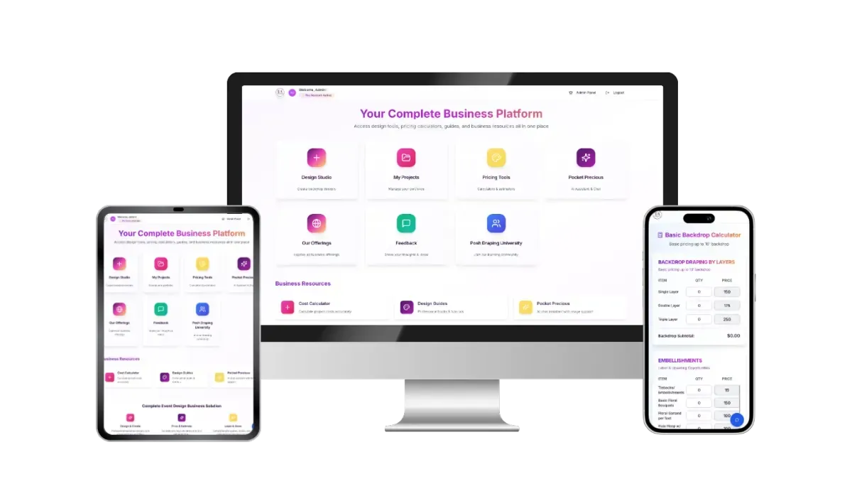 Get the ALL-IN-ONE TOOL to price your services, wow your clients, and grow a profitable draping brand.